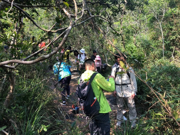 上午11点整抵达南澳街道办,从双拥码头到半天云村,经大毛田水库,登顶拋狗岭,再到红花岭,最后于 19:00下到,厚业人完成了南澳街道办-半天云村-拋狗岭-红花岭-西贡村—南澳下企沙马尔代夫的徒步穿 越,历时近8小时。